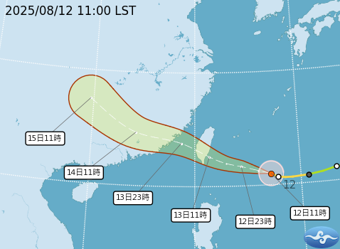 中央氣象署今(12)日上午05時30分已先發布海上颱風警報。